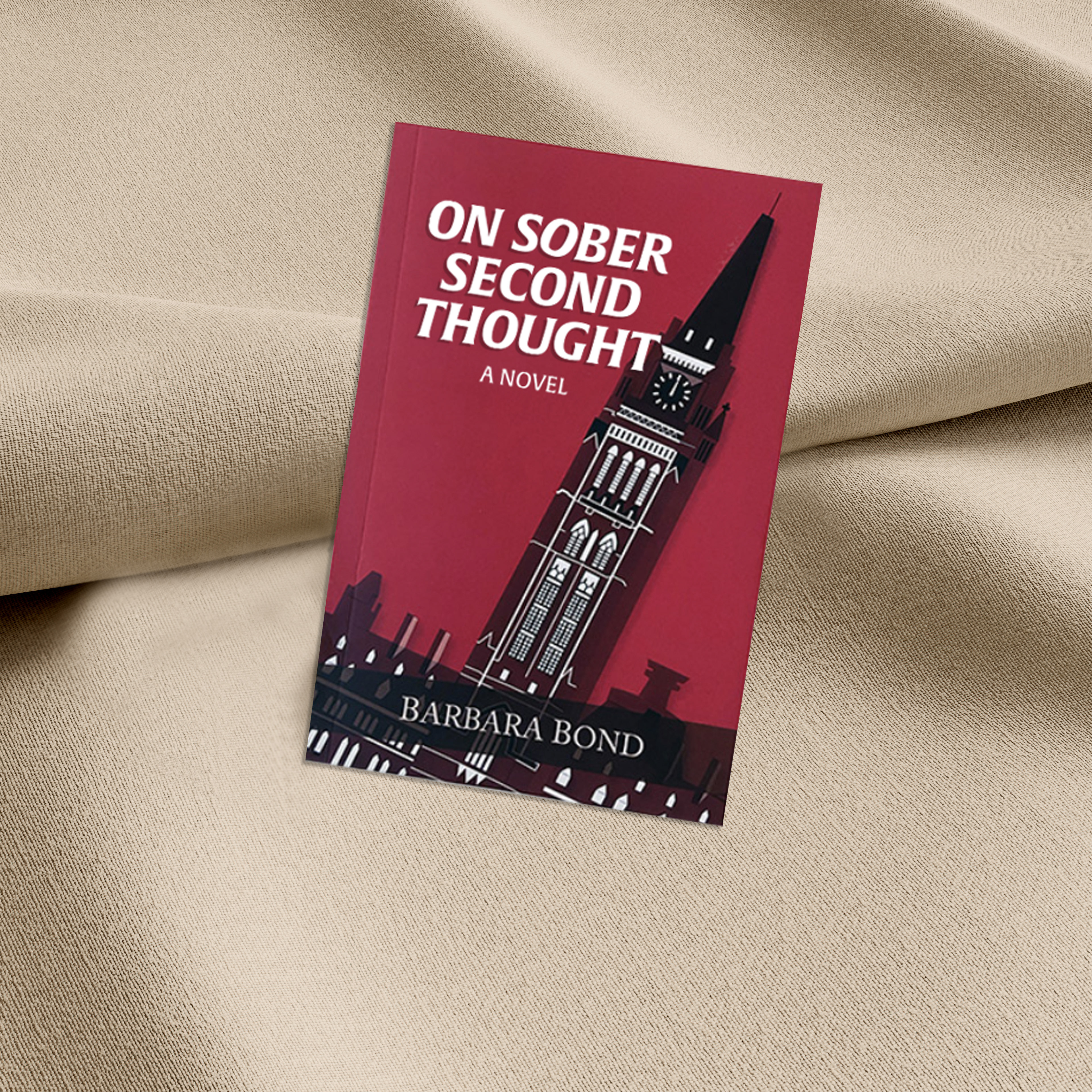 'On Sober Second Thought' is a novel by Barbara Bond. The objective was to design a layout of the book within a specific page range and create a cover design as specified by the author. The solution was to modify the detail of the illustration on the cover to suit printing specs and to modify the typography to fit the reduced amount of pages.